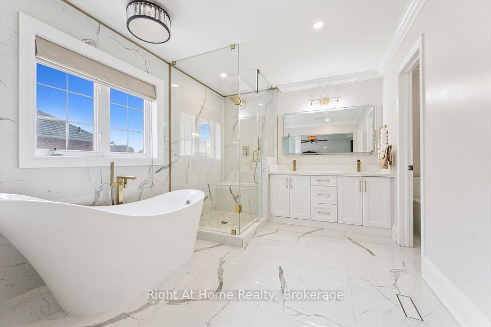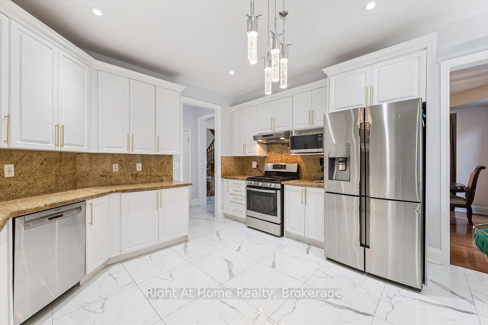 This exceptional 5bd, 4ba Corner Lot masterpiece with over 3,800 sqft in total living space is nestled in one of Oakville's most coveted neighbourhoods - Lakeshore Woods. Adjacent to Nautical Park this home provides a vibrant space for the whole family with unrivaled access to family-friendly amenities including, a Splash Pad, playground, and a sports field. With a school bus stop right at the front, a mailbox just outside, GO Stations, bus terminals, schools, and highways all in close proximity; convenience is at your doorstep! Step through the grand 36" x 96" fiberglass front entrance door to discover a fully renovated kitchen, featuring a massive 6' x 12' Island perfect for family gatherings and entertaining. With marble tile flooring, quartz countertops, and S/S appliances, and pot lights throughout, this kitchen is as functional as it is beautiful. All bathrooms have been updated with modern finishes, ensuring style and comfort. Upstairs, the primary suite features a luxurious 5pc ensuite and an expansive walk-in closet. The finished basement is complete with its own kitchen, bathroom, bedroom, and a separate entrance perfect for an in-law suite or guest accommodation. A cozy gas fireplace adds warmth and charm to the space. The double garage has been meticulously designed with epoxy flooring and separate furnace heating, ensuring comfort and durability. This upgraded beauty boasts more than $200,000 in high-end renovations and enhancements including, a custom 350sqft Pergola, complemented by an enchanting lighted waterfall and natural stone pond that creates a peaceful outdoor oasis. The backyard is beautifully landscaped with artificial turf, ensuring your lawn stays pristine year-round, while built-in landscape lighting sets the mood for evening relaxation. A lawn sprinkler system completes the package for low-maintenance outdoor living! With its perfect combination of luxury upgrades, functional design, and a prime location, its the ultimate family home!