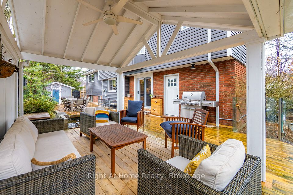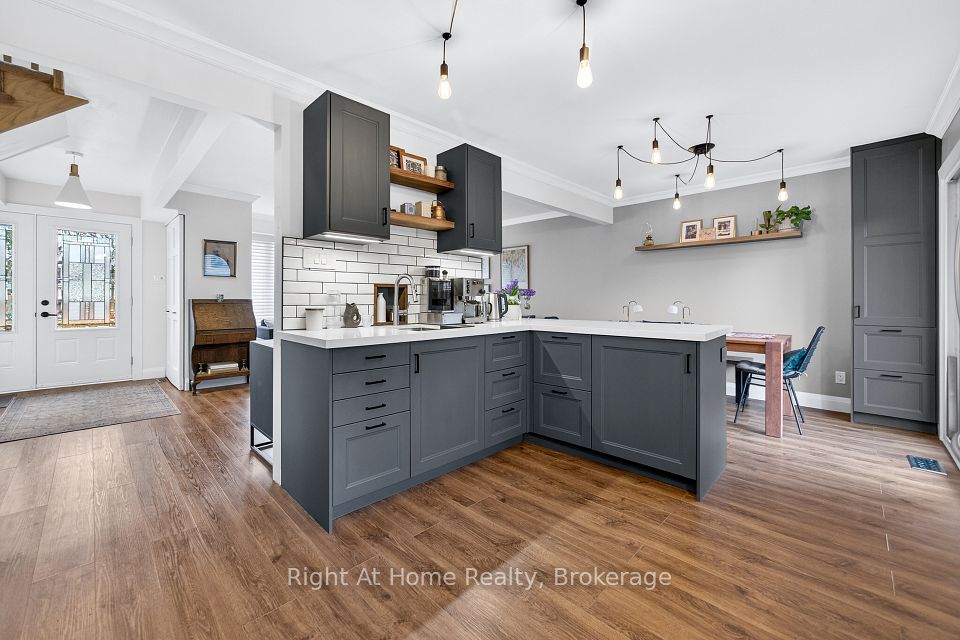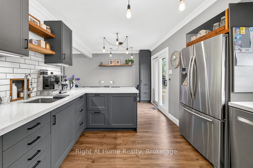 Presenting a rare opportunity to own in the highly sought-after, family-friendly neighbourhood of Elizabeth Gardens in Burlington. Just minutes from the shores of Lake Ontario, everyday amenities, parks, and top-rated schools-including Nelson High School-this beautifully refreshed home offers exceptional space, comfort, and lifestyle. Boasting 5+1 bedrooms and 4 bathrooms across five thoughtfully designed levels, this home is filled with natural light and generous living areas for the whole family. The oversized primary retreat features a private ensuite and a spacious walk-in closet, creating a true sanctuary. At the heart of the home, the stylish, on-trend eat-in kitchen is as functional as it is inviting, complete with two work sinks and ample space for gathering, cooking, and entertaining. Step outside to your own private backyard oasis. Relax beside the tranquil waterfall pond, entertain under the wooden gazebo, or unwind by the sparkling saltwater inground pool. A gas BBQ hookup makes outdoor dining effortless, while the large shed and raised garden beds offer added convenience for hobbyists and home gardeners alike. The newly renovated lower-level family room is warm and welcoming, featuring a cozy gas fireplace and abundant seating space. Downstairs, you'll also find a cedar-lined wine closet, a well-designed laundry area, generous storage, and a dedicated workshop-perfect for renovators, carpenters, or creative pursuits. With a newer furnace and A/C, a brand-new skylight window, four-car parking, including garage space, and evident pride of ownership throughout, this lovingly maintained home offers comfort, versatility, and timeless appeal. This is a home that truly must be experienced to be appreciated.