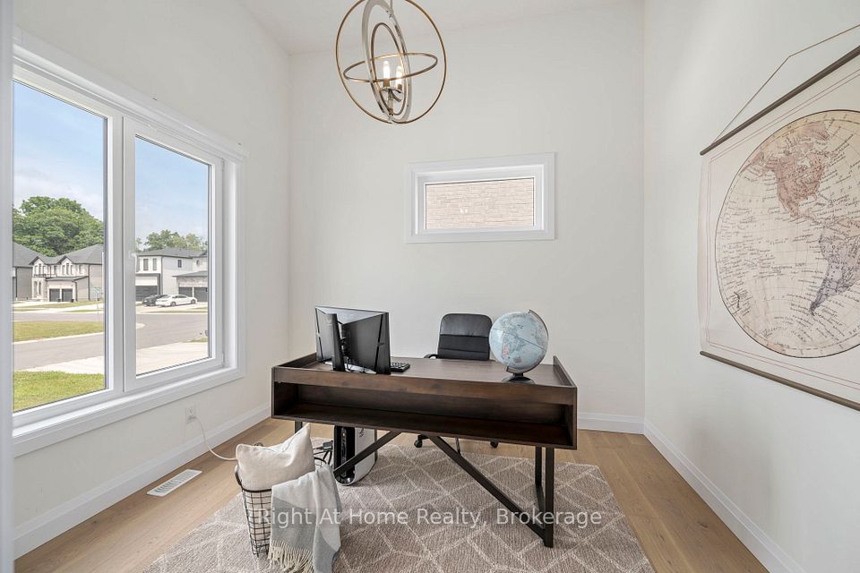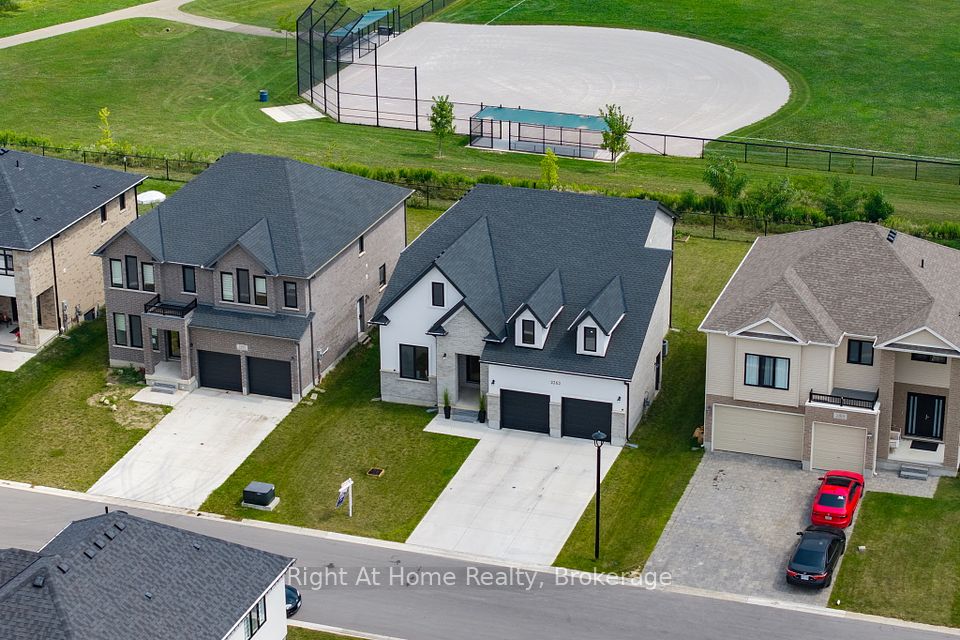 Welcome to your dream home in Heathwoods, Lambeth one of South London's most desirable communities! This 3-year-young, beautifully custom-designed 2,442 sq. ft. home sits on a generous 53-foot lot backing directly onto Lambeth Optimist Park. With unobstructed park views and no busy walking trails behind, you'll enjoy rare privacy along with direct access to soccer fields, baseball diamonds, and wide-open green spaces. The south-facing backyard ensures natural sunlight all day long. Inside, the home makes a dramatic impression with its 17-foot foyer ceiling and bright, open layout. The 1,275 sq. ft. main floor features a versatile office, stylish powder room with extra-high ceilings, and a welcoming living space complete with a cozy gas fireplace. The gourmet kitchen is boasting a large island, quartz countertops, gas stove, abundant cabinetry, and a walk-in pantry. Engineered hardwood floors and European tilt-and-turn large windows add both elegance and efficiency. The front office can be easily convert to 4th bedroom. Upstairs, the park-facing primary suite offers serene views, joined by a second bedroom with the same outlook. The unfinished 1,200 sq. ft. basement provides ample opportunity to create the space you've always wanted from a home gym to a theater or guest suite. Perfectly located near major highways, shopping, schools, and a recreation center, this property offers the best of both worlds: peaceful, family-friendly living with every convenience close at hand. Call listing agent for a private showing!