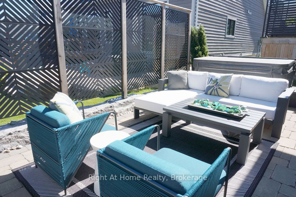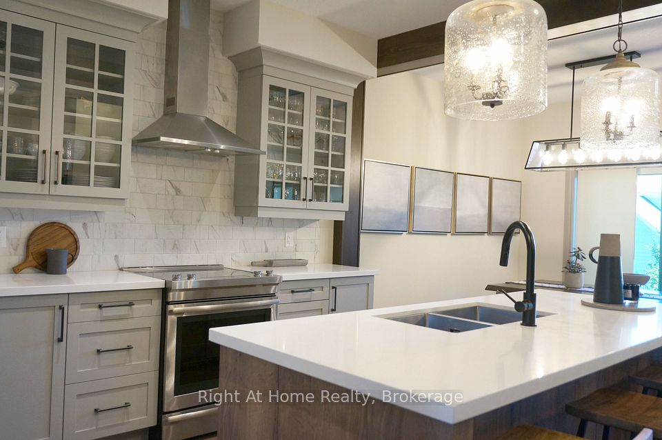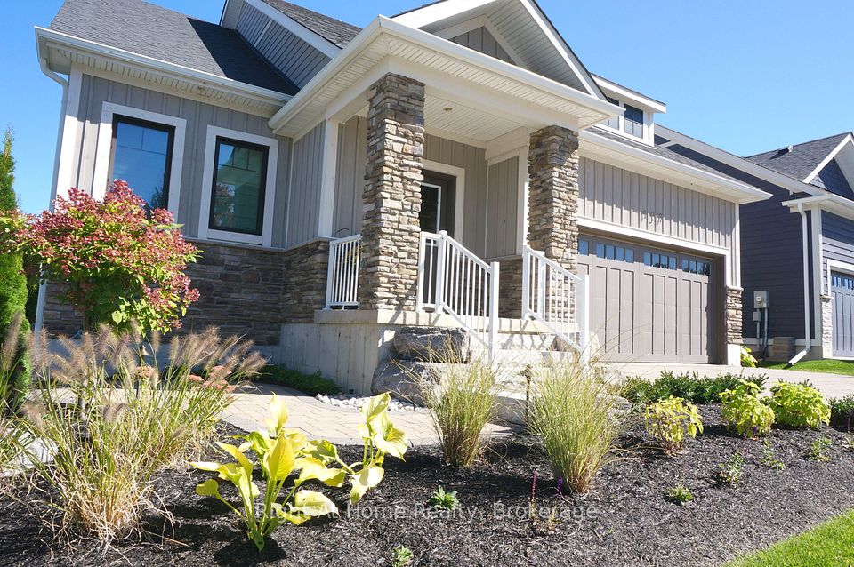 Welcome to the award-winning Cottages of Lora Bay. This Builder's 5-bedroom and 4-bath Model Home features over 3500 sq. ft. of finished modern living space, showcasing fine interior design with distinguished exteriors and exquisitely appointed interiors: fabulously flowing open concept design from top to the bottom level, main floor primary with ensuite, walk-in closet, luxurious wall coverings, custom trim & door painting and stylish finishes. The bright Great Room boasts soaring vaulted ceilings with impressive lighting and a floor-to-ceiling stone gas fireplace. The professionally designed kitchen features a walk-in pantry, upgraded quality cabinets in two different finishes, an oversized quartz island, upgraded appliances and lighting. A trendy powder room with mosaic porcelain flooring, a stone sink and practical pocket doors. Upper level boasts two bedrooms and a cozy loft overlooking the great room, which can be used as an office. Over $200,000 spent in upgrades, including a fully finished basement, two additional spacious bedrooms, a full bathroom, plus a very trendy wine cooling room with a drink bar behind the glass wall. Two-car garage equipped with professional cabinets providing plenty of storage, insulated doors, and superior finished garage flooring providing stain-free durability. The textured surface provides added traction, ensuring the safety of you and your family. GDO and an EV car charger for your convenience. The hot tub in the garden is an oasis of peace and relaxation. Professional landscaping all around the property with lush trees and plants. A minute's walk to Lora Bay community Beach Club for swimming, kayaking & beach volleyball. Free access to the gym at Lora Bay Country Club. Conveniently located minutes from Thornbury's downtown shops, restaurants & cafes. Sport and hiking enthusiasts can enjoy a whole year of entertainment with a walk to The Golf Club at Lora Bay or a short drive to other golf clubs and private skiing.