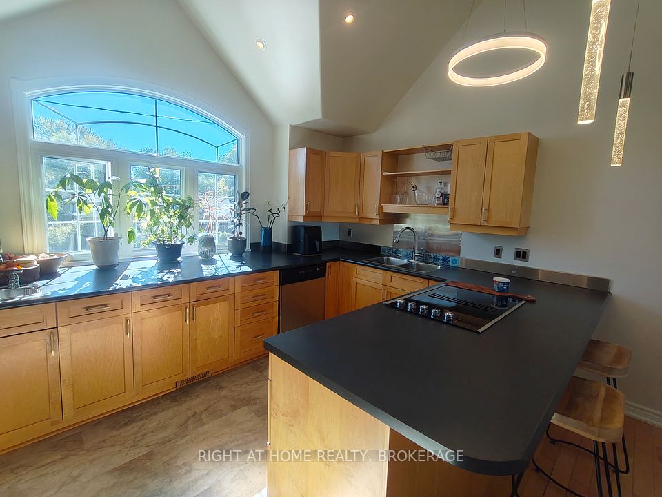 Brace yourself - this property is a tough one to match. It oozes uniqueness from top to bottom, starting with the lot sitting on top of the Niagara Escarpment, offering the most stunning views of the city, sunsets, Lake Ontario and as far as the iconic Toronto Skyline found on post cards. The house was custom built by Gatta Homes, with 16.5ft angled ceilings and many extra design details. Located perfectly on a quiet street, with no neighbours to one side, and close to ALL the amenities imaginable! Upon entering, you step into a large open main floor with a bright sitting area, a bedroom, 3pc bathroom and laundry room. A 48in wide staircase leads you upstairs where it's hard not to notice the views right away through the large 6.5ft high windows all around the open concept kitchen, living room & dining area. The kitchen is decked out with S/S appliances, built-in convection oven, ceramic stovetop with downward draft exhaust & a bar sink. The dining area is by the balcony with easy access to the natural gas BBQ & great views through the glass railings. There is also a 2pc bathroom. The Master bedroom adds a touch of romance with its French doors and Juliette balcony looking out to the yard. It has a walk-in closet, skylight, and 4pc bathroom including jacuzzi tub with skylight above. Wait, there is more, another level up you will find the loft with beautiful views from a height that make you feel like you are atop the trees - make it your space: either a comfy relax spot, workout/yoga area, or an office - Cool feature: it overlooks the entire 2nd floor - you just have to see it for yourself. The finished basement shows off a stone wall built from the original rocks from excavation and is big enough for an office, tv/games room, or has in-law potential, with a wet bar and an additional 3pc bathroom. The attached 1.5 car garage leads to the incredible backyard where you can sit amongst the 60+ trees&shrubs (added by the owner) and enjoy all the zen nature has to offer.
