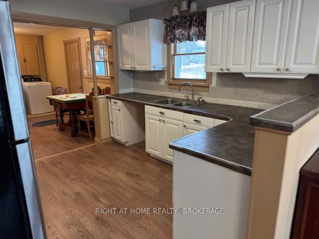 Great property with potential for Air 'B" N B'. Large 3 bedroom bungalow open concept with kitchen L Shaped Kitchen overlooking the Living Room that has Cathedral ceilings. Triple car garage with hydro on about half acre lot. Minutes to the beach. Carpet free except one bedroom. Laminate in all other rooms. One bedroom has walk out to wood deck. Nicely landscaped and move in ready. Closets are all double and lots of storage