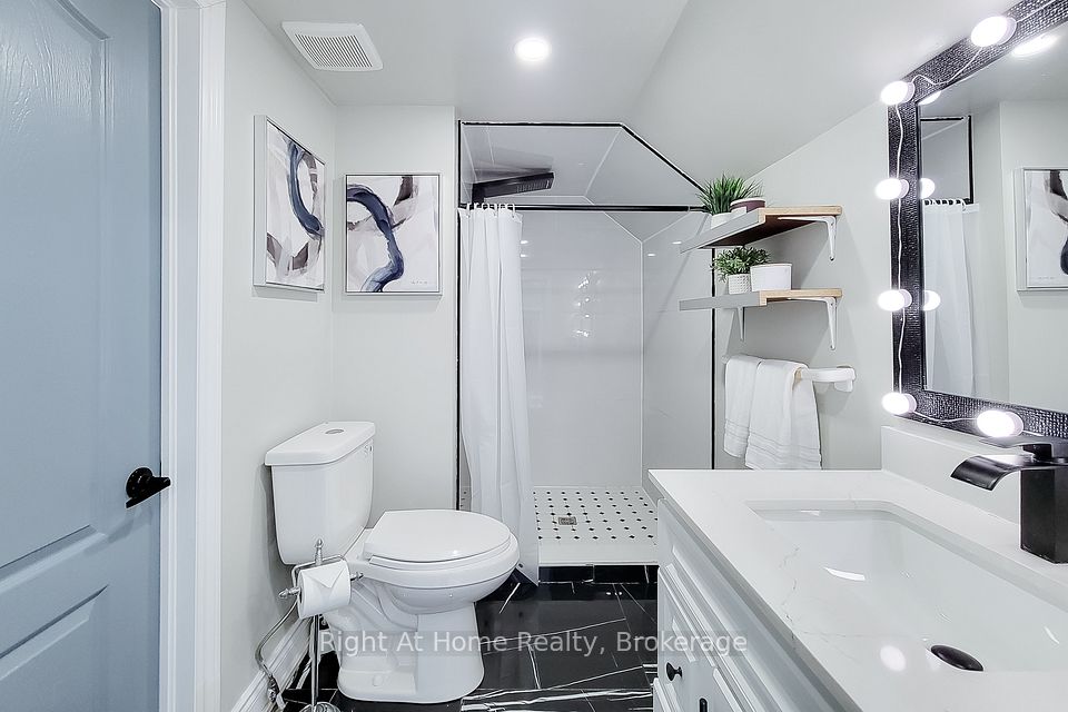 Full BASEMENT SUITE with separate entrance and kitchen! 2-car detached garage! Welcome to this beautifully updated, fully detached 1.5 storey home in the heart of Stoney Creek. This move-in ready beauty offers approximately 1,100 sq. ft. of stylish living space (total 1615 sq ft including basement) with 4 bedrooms, 3 full custom bathrooms, 2 kitchens, and 2 laundry areas, ideal for families, multi-generational living, or investors. From the moment you step inside, you'll be awestruck by the warm and welcoming layout and the intelligent use of space throughout the home, making every level feel both functional and inviting. The stunning main kitchen is beautifully finished with custom cabinetry, quartz counters, and a gorgeous additional island installed in 2024, complete with dishwasher, creating the perfect space for cooking and entertaining. The main bathrooms are equipped with spa-like wall-mounted shower panel systems boasting overhead rain shower heads, vertical body spray jets, and handheld shower wands, adding a sleek, modern touch to the home's thoughtful updates. The lower level features a full 1-bedroom apartment with separate entrance, full 3-piece bath, living area, and kitchen with range and full-size refrigerator. Updates completed in 2023 include the roof, siding, driveway, all exterior doors, air conditioner, and electrical panel. Set on a massive 60 x 127 ft. lot with parking for an incredible 9 cars (2 in the garage, 7 on the drive), this property also offers a large deck and spacious backyard in a quiet, family-friendly neighbourhood close to schools, parks, shopping, and transit. Visit today!